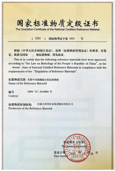 全区首家! 伊利股份获内蒙古首张二级尺度物质