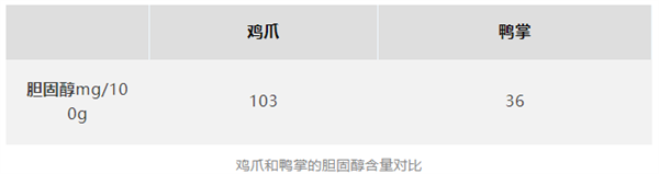 此次要是由于鸡爪的皮下脂肪较高,鸡爪脂肪含量高达 16。4 克/100 克,所以吃起来很肥美;而鸭掌筋多肉少,脂肪含量较低,只要 1。9 克/100 克。1 个鸡爪可食部约 30 克,良多人一吃就是 5 个起步,将会摄入近 400 千卡的热量,都相当于约两碗米饭了。再考虑到好吃的鸡爪都是加了油、糖烹饪过的,热量更高,若是把鸡爪换成鸭掌热量能降低近一半。我国国度卫健委发布的《高脂血症食养指南》中提到:高脂血症人群胆固醇每日摄入量应少于 300 毫克,而高胆固醇血症者每日胆固醇摄入量应少于 200 毫克。鸡爪的胆固醇含量为 103 毫克/100 克,而鸭掌是 36 毫克/100 克,只要鸡爪的近 1/3,所以取鸡爪比拟,鸭掌对血脂异群来说也更敌对一些。[1]